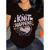 European Size Women'S Casual Knit Happens Graphic T-Shirt - White Short Sleeve Crew Neck with Colorful Yarn & Heart Design