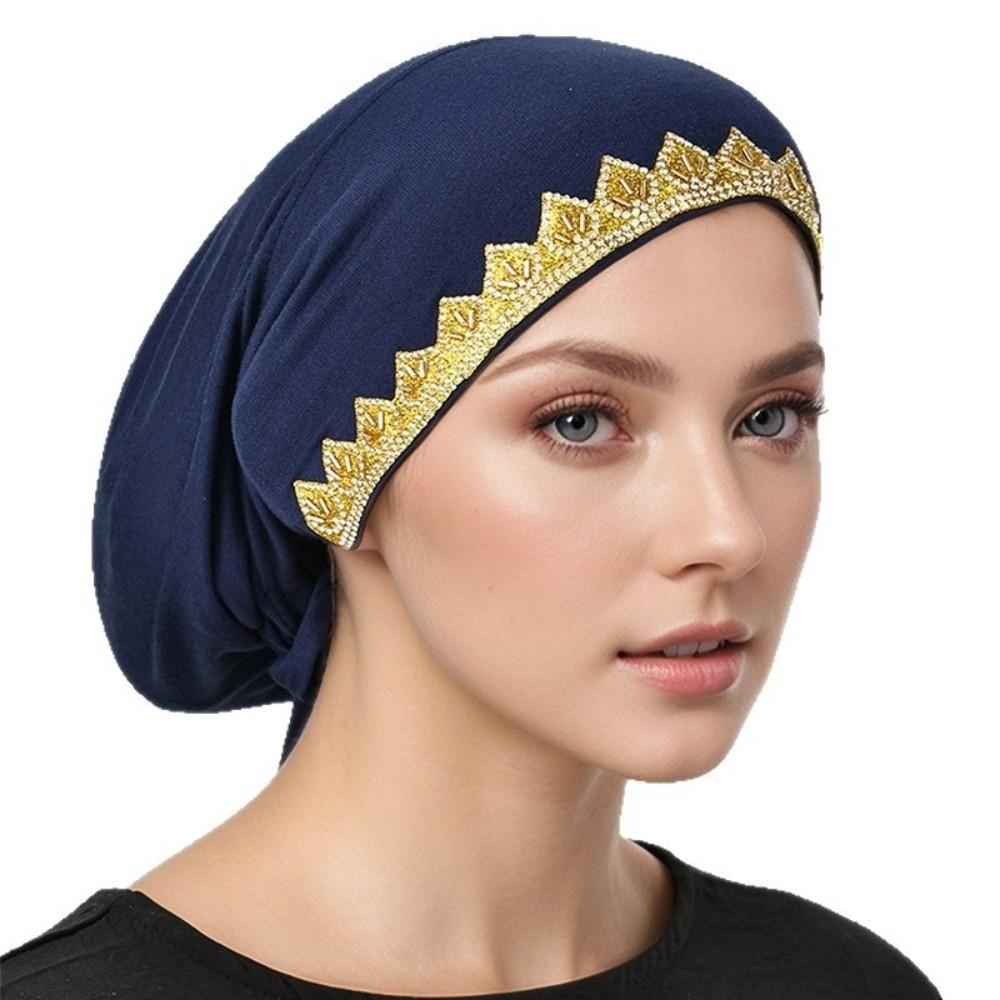 Shiny Golden Rhinestone Inner Hijabs Elasticity Tie Back Undercap Prayer Cap Religious Headwear