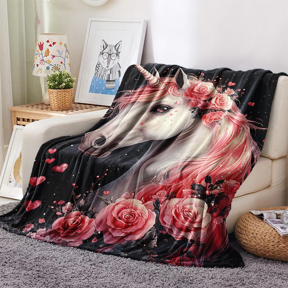 Unicorn Print Flannel Blanket, High Quality Comfortable for All Seasons, Home Decor, Warmth and Comfort, Perfect for Christmas Gifts