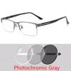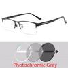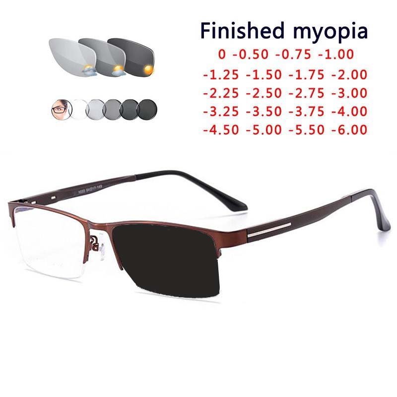 Men's Outdoor Shade Semi-Rimless Photochromic Gray Square Prescription Eyeglasses Metal Shortsight SPH 0 -0.5 -0.75 -1.0 TO -6.0