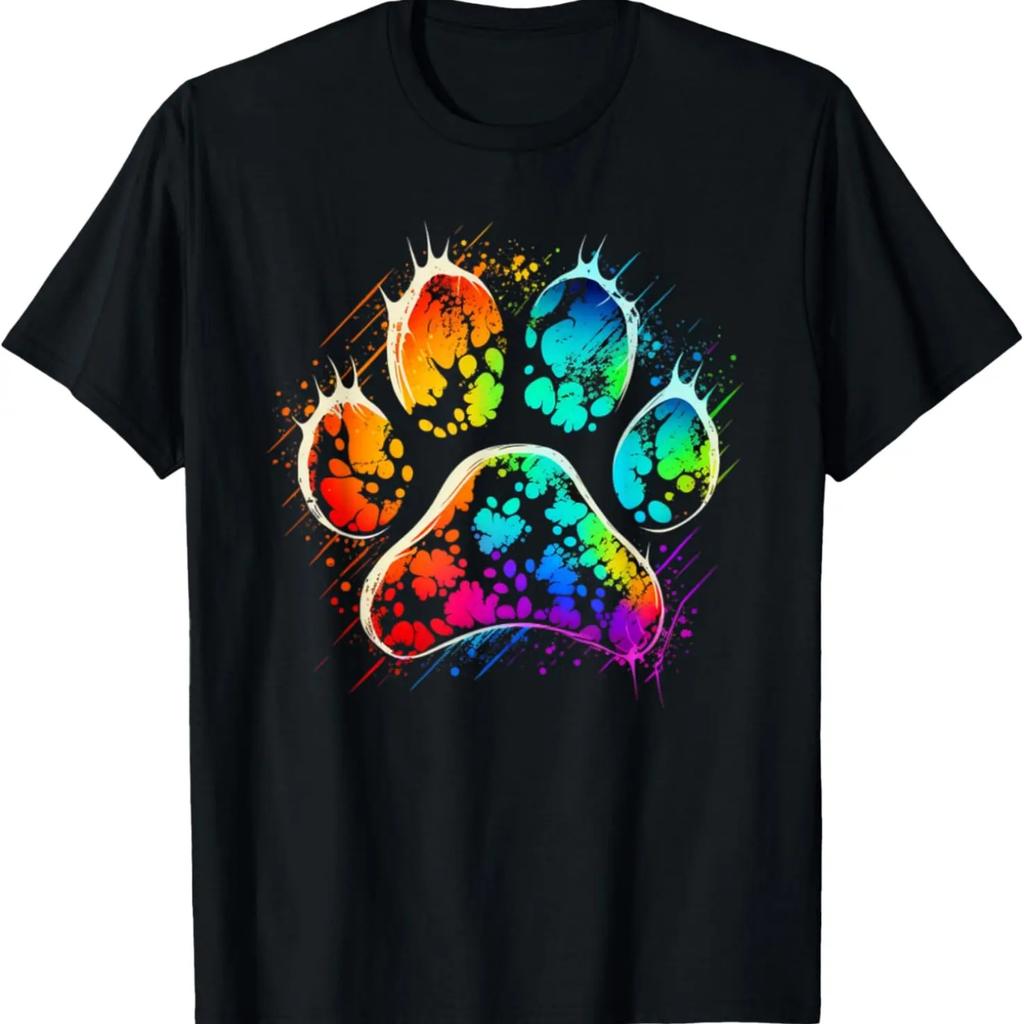 Dog Paw Print Cute Dog Lover Colorful T-Shirt