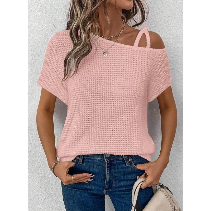 Short-sleeved Solid Tops for Women Summer New Styles Versatile Off-shoulder Knitted Women's Clothing