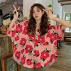 Ladies Summer Holiday Bohe Shirt - Oversized Short Sleeve Button Down Flower Printed Top for Casual Layering