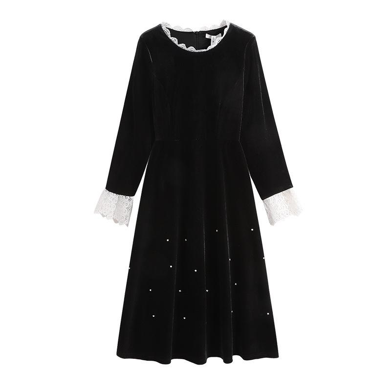 Plus-size Women's Spring Chiffon Dress with Diamond Embellishments and Slimming Effect. A-line Skirt.
