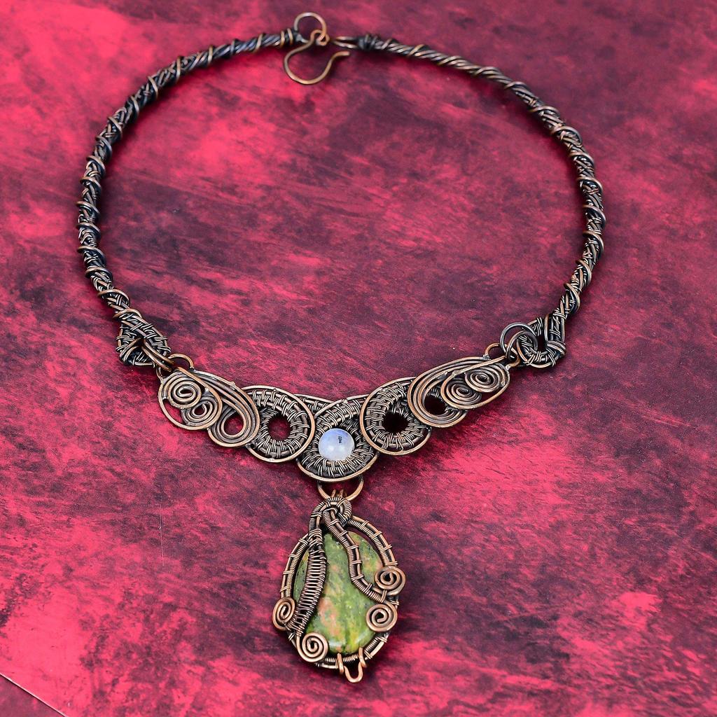 Unakite Necklace Copper Wire Wrapped Jewelry Rainbow Moonstone Gemstone Necklace Handmade Jewelry Designer Copper Necklace Anniversary Gifts