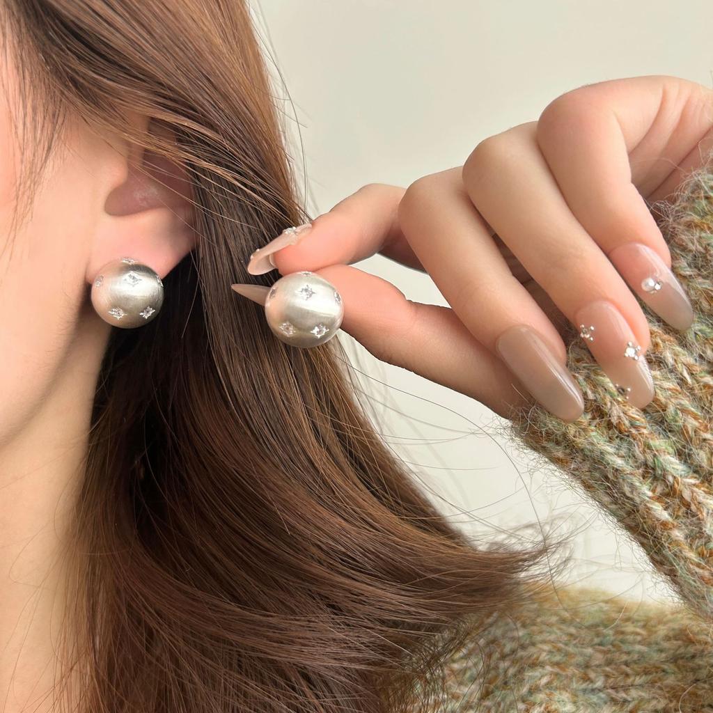 Metal Ball Brushed Stud Earrings Niche Unique Star Earrings 2026 Burst Diamond Earrings