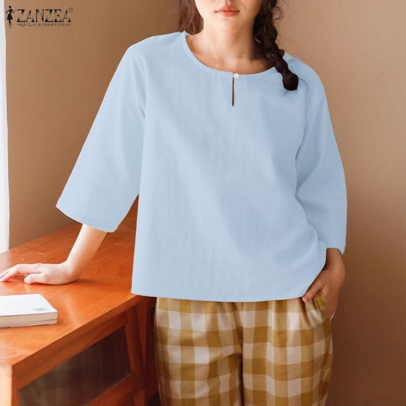 ZANZEA Women Casual Round Neck Solid Color 3/4 Sleeve Blouse