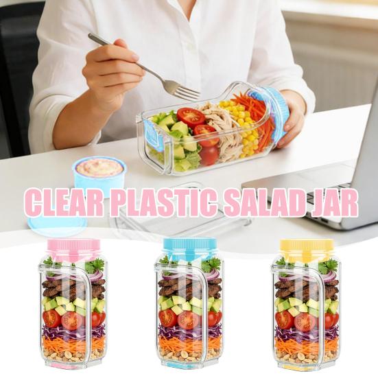 1/2Pcs Salad Storage Jar Food Grade Leakproof Clear Plastic Reusable Salad Jar Food Grade Salad Storage Container