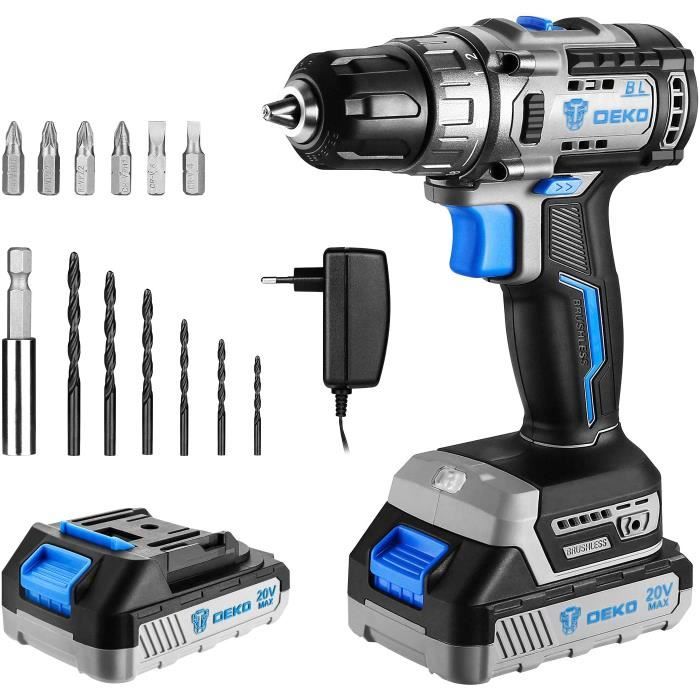 Perceuse-visseuse sans balais - DEKO - 20V - Mandrin sans clé - Couple 371 in-lbs - Vitesse variable 2