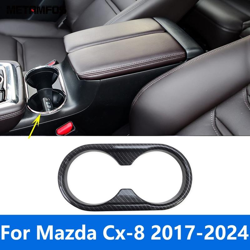 For Mazda CX-8 CX8 2017- 2024 Carbon Fiber Front Rear Water Cup Holder Panel Cover Trim Interior Accessories Car Styling