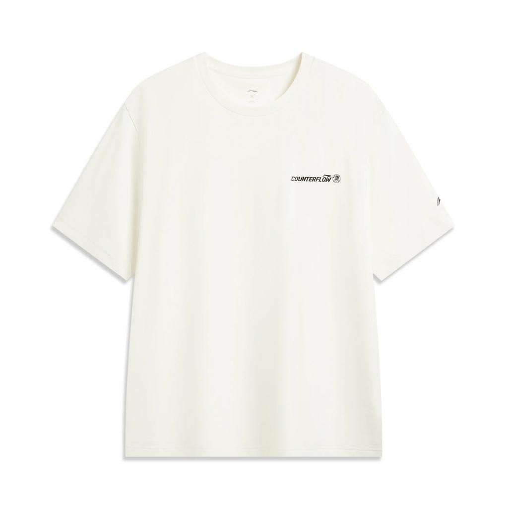 Li-Ning Outdoor CF Quick-Dry Cool Round Neck T-Shirt With Solid Color Letter Logo Men Tops Off-White ATSW031-1