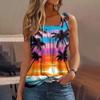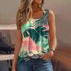 Women's Summer Casual Pleated Square Neck Sleeveless Tank Top Printed T-Shirt