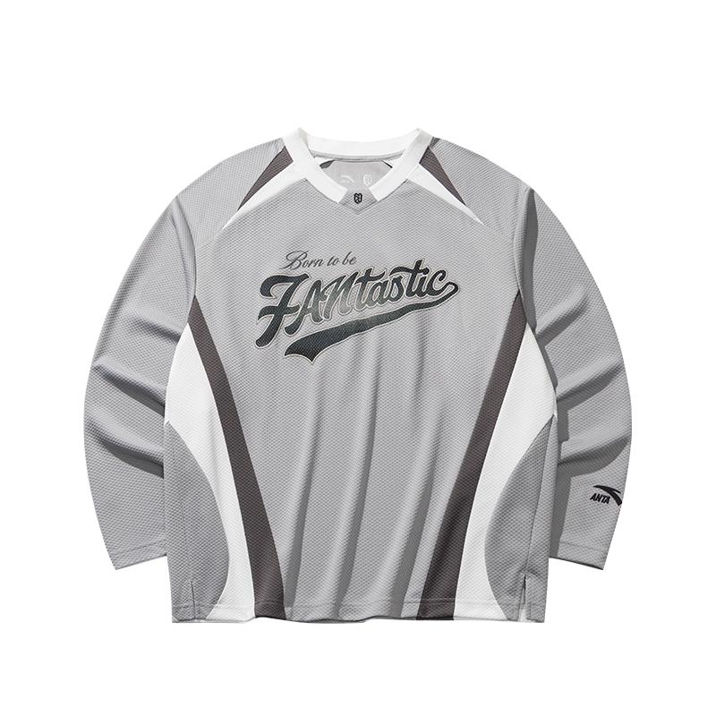 Anta V-Neck Color Block Comfortable Long Sleeve T-Shirt Unisex Tops 172628401R-2