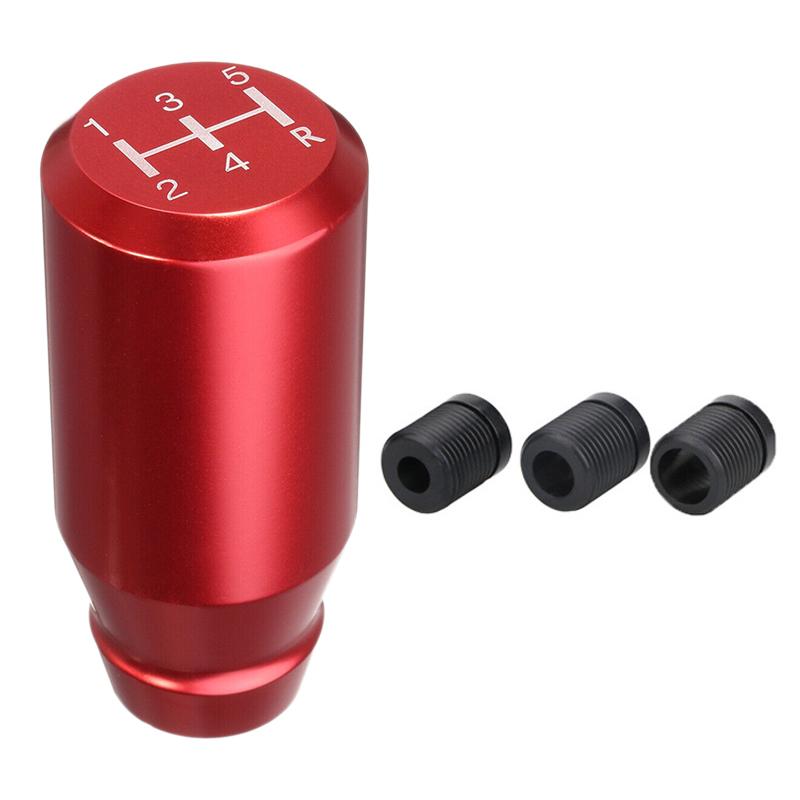 Red 5 Speed Car Manual Aluminium Alloy Gear Stick Shift Knob Shifter Lever Head with 3 Adapter