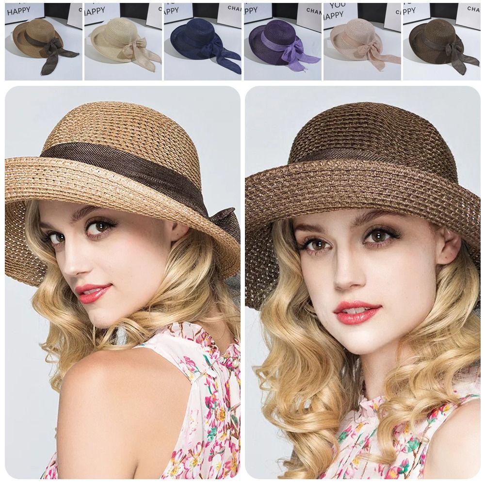1Pcs Vintage Women Hat with Bowknot Casual Straw Cap Summer Sun Hat for Outdoor Travel Beach
