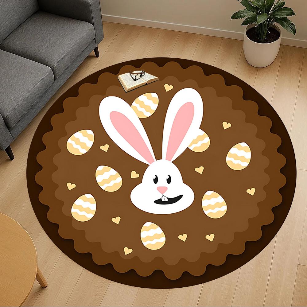 1pc Egg Rabbit Round Chair Mat Area Rug - Non-Slip, Floor Mat for Office, Bedroom, and Indoor Decor C1125171