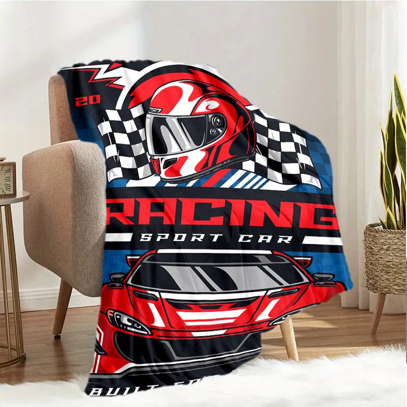 Retro Racing Sport Pattern Flannel Printed Blanket Suitable for All Seasons Suitable for Living Room Office Sofa and Travel