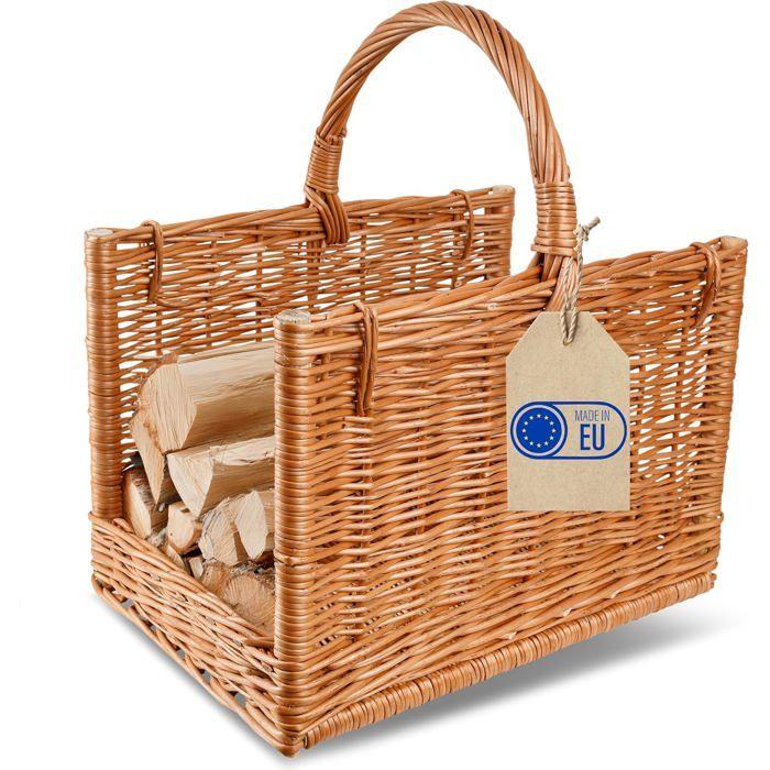 Panier à bûches - CREATIVE HOME - Cheminée - Osier 100% naturel - Poignées robustes - 45x30x47 cm