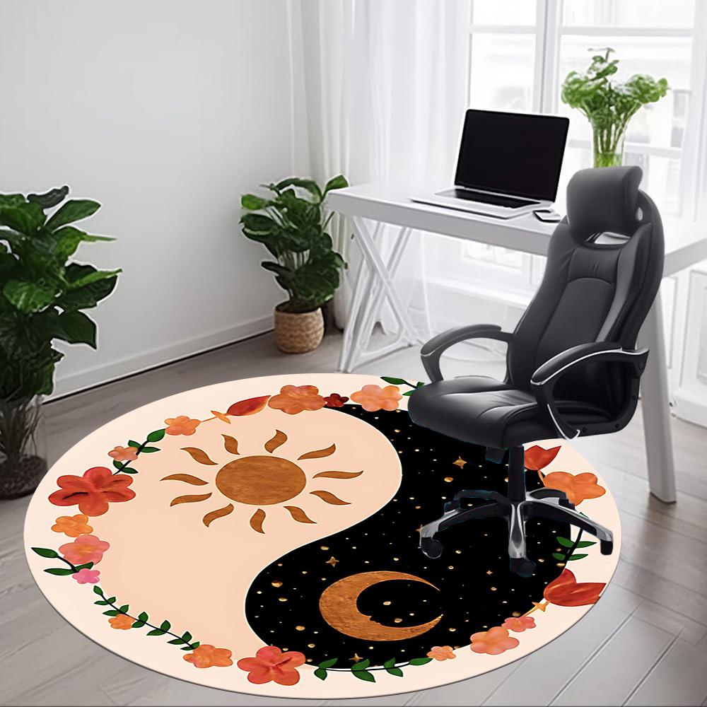 1pc DayNight YinYang Office Round Area Rug, Mat Suitable For Office, Under Office Chairs Bedroom Living Room Home Decor, Room Deco