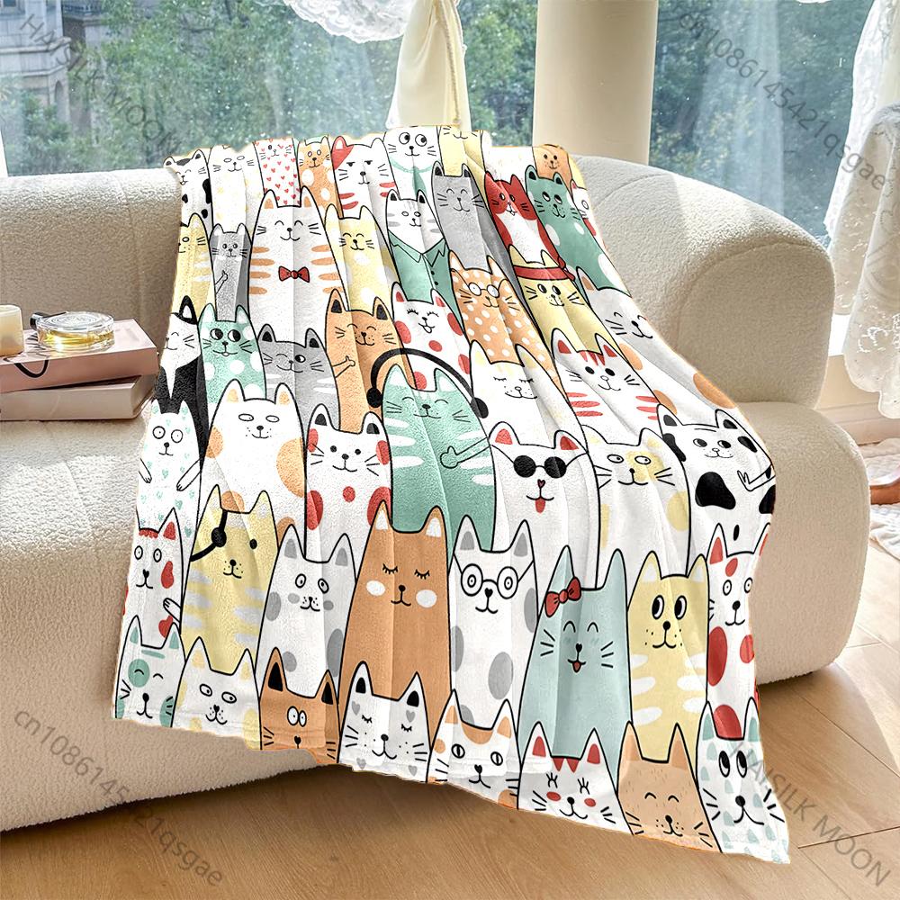 6 Style A Group of Cute Cartoon Cats Print Warm Comfortable Blanket Home Travel Camping for Adults and Kids Luxury Gifts