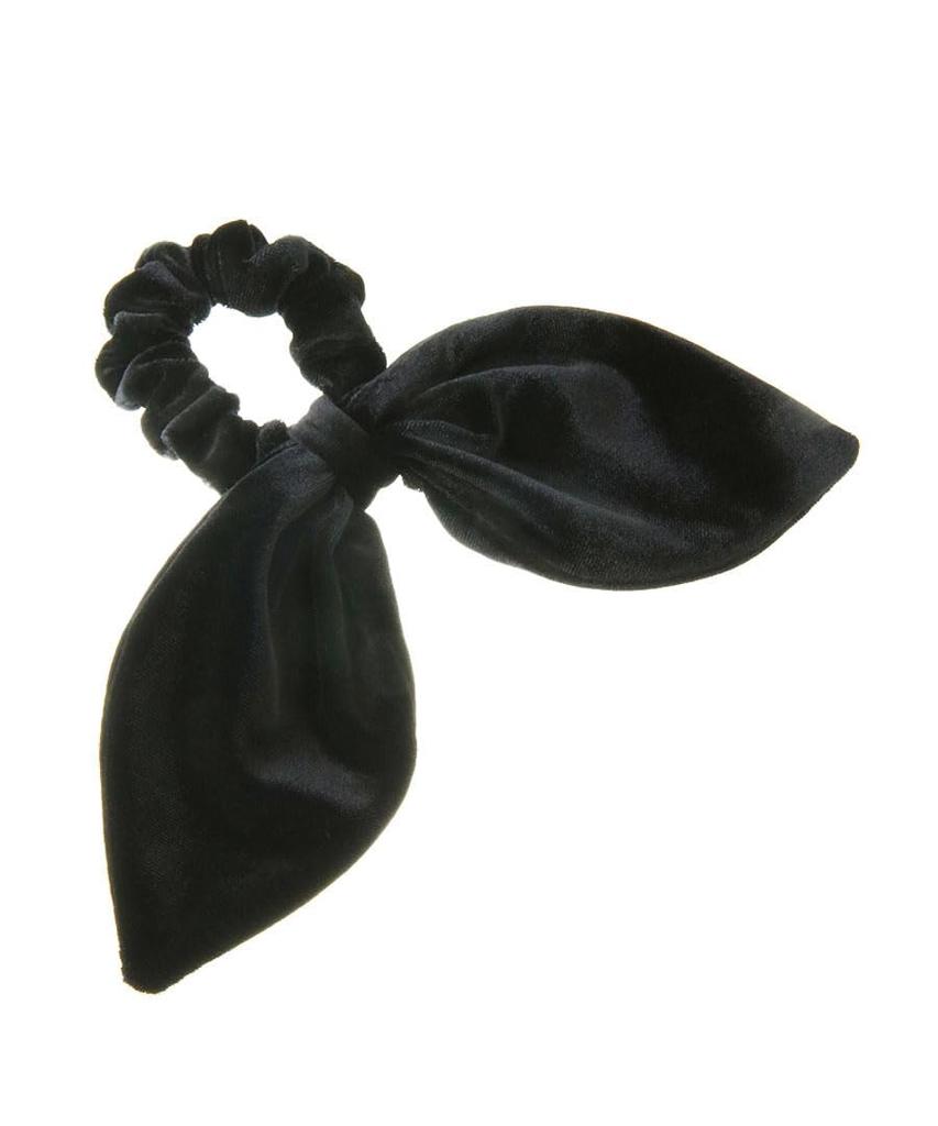 VINGTAINE Velvet Ribbon Scrunchie Hair Women's Tie, 2-Way, Detachable, Elegant, H7930-BLACK
