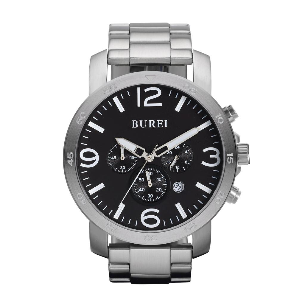 BUREI Analog Watch with Date Waterproof Quartz Black Simple Design for Business and Casual Chronograph with Large Luxury Gift for Men Men's Display,