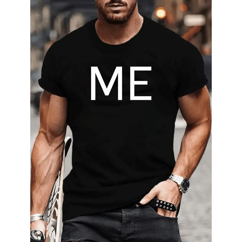 European Sizes "ME" Letter Print for Trendy Men's Street Style, Men's Wear, Light Round-neck Short-sleeved Shirts