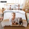 3D Digital Printing Fashion Design Queen Size Lovely Cat Bedding Set, Duvet Cover Set