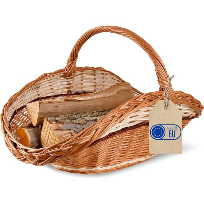 Panier à bois - CREATIVE HOME - 67x41x43 cm - Osier tressé naturel - Poignée - Brun