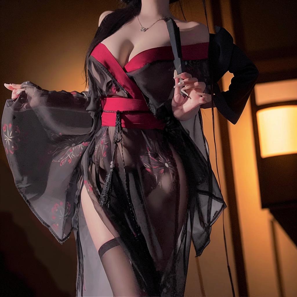 Sexy Japanese Kimono Chiffon Uniform Pure Desire Free Printing Cos Character Clothes Suit