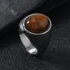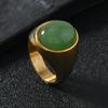 European & American Luxury Stainless Steel Oval Natural Stone Couple Ring