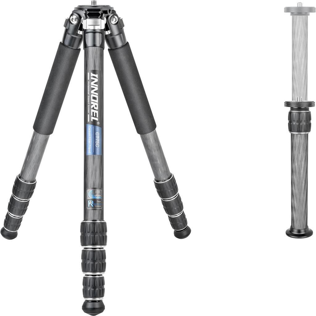 INNOREL Carbon Fiber Camera Telescopic SLR Working Pipe 20kg Maximum Load Panoramic Macro Video Digital Portable Tripod with Center Pole and Bag