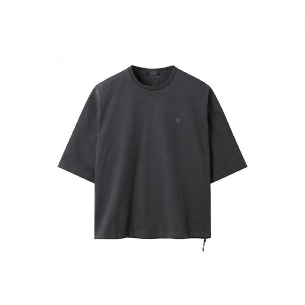The Gray Oversized Fit Dying T-Shirt is a casual t-shirt that features pigment dye processing. With a drop shoulder design, it allows for a trendy silhouette, and the front logo patch adds a cute touch. The item is part of an online-exclusive line with a signature decoration ring that stands out. Made with moderately thick dyed cotton fabric, it boasts excellent shape retention.