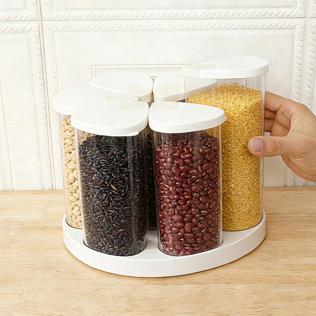 5/6 Grid Food Grain Storage Container Plastic Kitchen Storage Containers with 360 ° Rotating Base Transparent Grain Rice Dispens