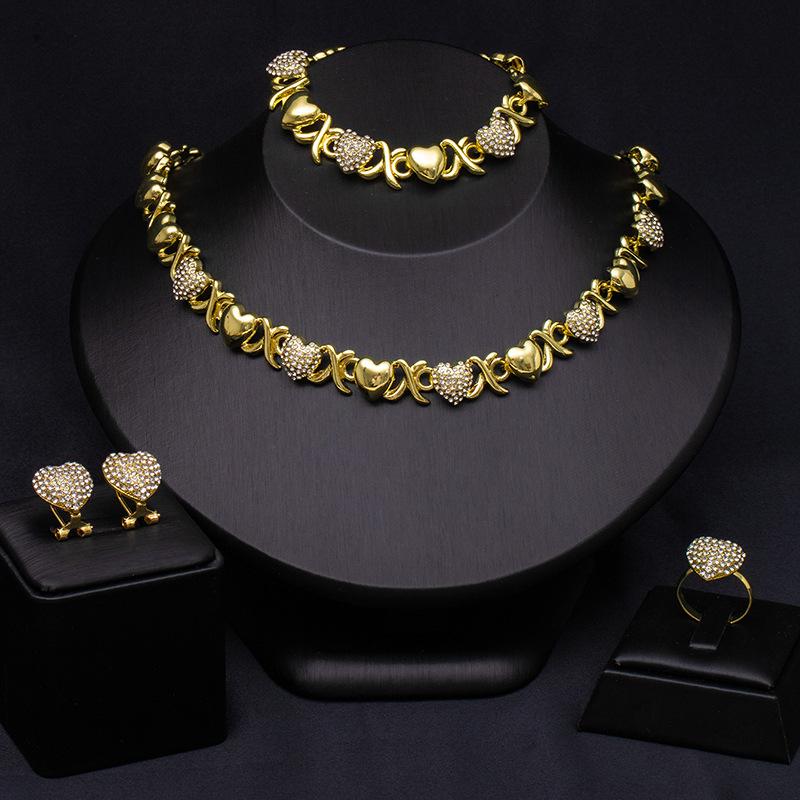 Classic Jewelry Four-Piece Set Love Gold Plated Diamond Necklace Earrings Bracelet Ring Jewelry Set Women