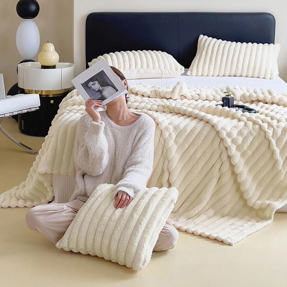 Comfortable Flannel Blanket Solid Color Office Nap Blanket Durable Plush Blanket Home