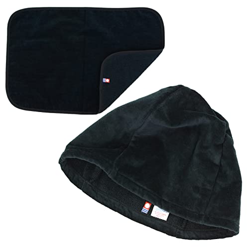 Lulu&berry Sauna Hat, Imabari Towel Certified, Matching Sauna Mat Set, Men's and Women's Sauna Cap, Towel Fabric, Washable, Shirring, Black, Size L
