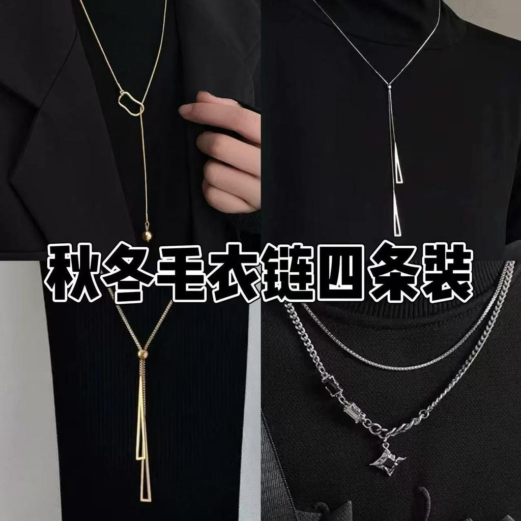 Mangxing Double-layer Necklace Men's Trendy Sweater Chain Light Luxury Niche Design Hip-hop Style Couple Boys and Women's Collarbone Chain