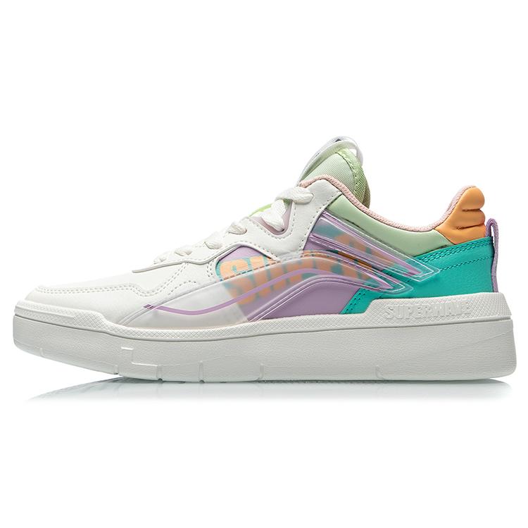 Li Ning Wave Superwave LO Non Slip Lightweight Low Top Skateboard Shoes Women's White Purple Green AECR004-2