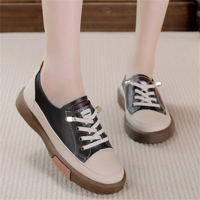 Genuine Leather Women's Flat Sneakers Size 35-40 Autumn Vulcanized Shoes Ladies White Casual Shoes Comfortable Flats
