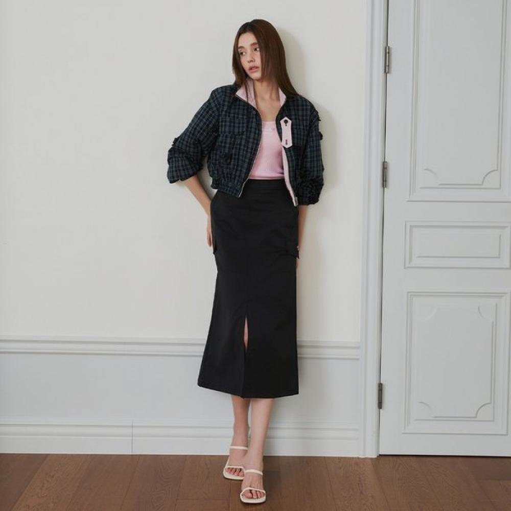 [BL] Cargo Banding Midi Skirt is a midi-length skirt featuring a trendy design and comfortable fit. It pairs well with casual looks and is versatile for everyday styling.