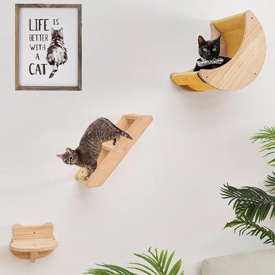 Cat Shelf Wall Hammock Climbing Shelves Moon Shaped And Perches Ladder Solid Wood Steps For Activity Indoor Cats Wall Furniture