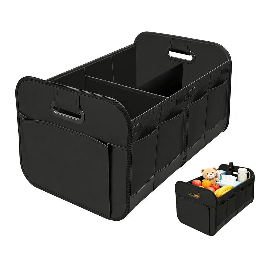 Foldable 65L Car Trunk Storage Box with Three and Divided Perfect for Car Trunk and Back Seat Portable and Easy To Ideal for and Camping Compartments,