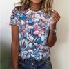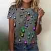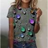Summer New Women's Loose Shirt, Water Drop Pattern Printing Round Neck Short Sleeves