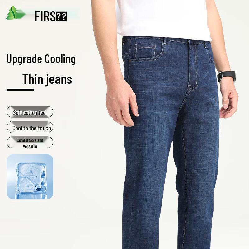FIRS Men's Xinjiang Cotton Thin Straight Loose Fit Stretch Jeans