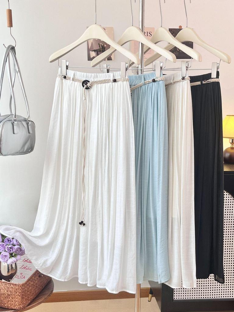 Bohemian High-Waisted A-Line Midi Skirt with Belt - Women's Flowing Slim Summer 2026 Style