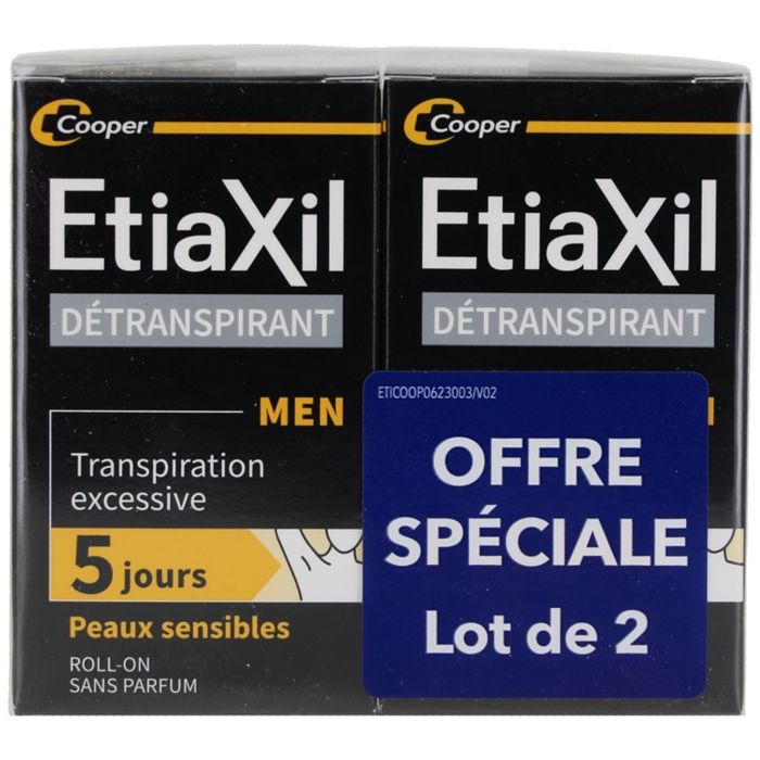 Détranspirant - Etiaxil - Men - Peaux Sensibles - Lot de 2 - Hypoallergénique