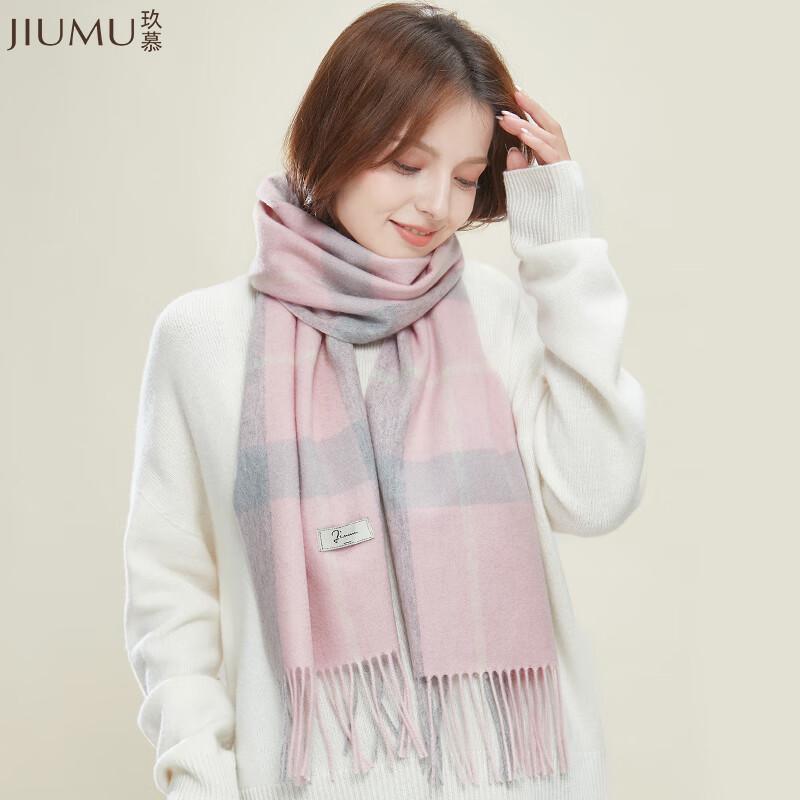 JIUMU Women's Pure Wool Retro Plaid Scarf