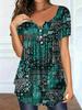 Elevate your spring and summer wardrobe with this stylish plus-size top, featuring an elegant paisley print. Crafted from soft polyester, this top offers both comfort and durability. The V-neckline adds a touch of sophistication, while the short sleeves provide a breezy feel for warmer days. Perfect for casual outings or dressing up, this top is a versatile addition to any closet.