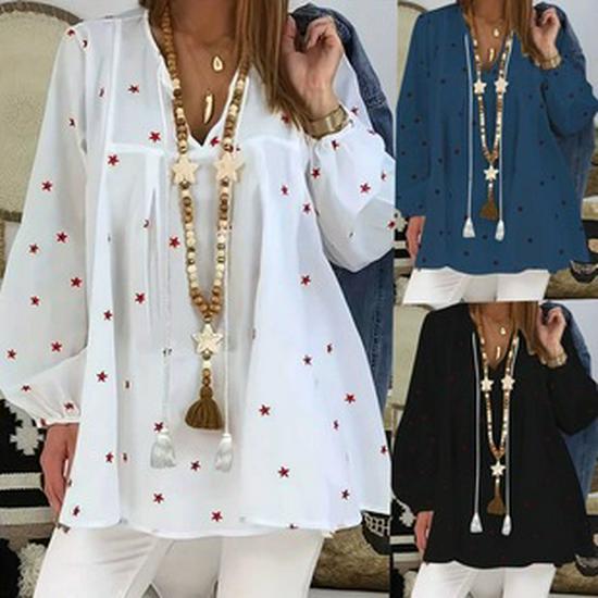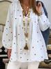 2025 Autumn V-neck Star Print Drawstring Comfortable Casual Loose Batwing Sleeve Pullover